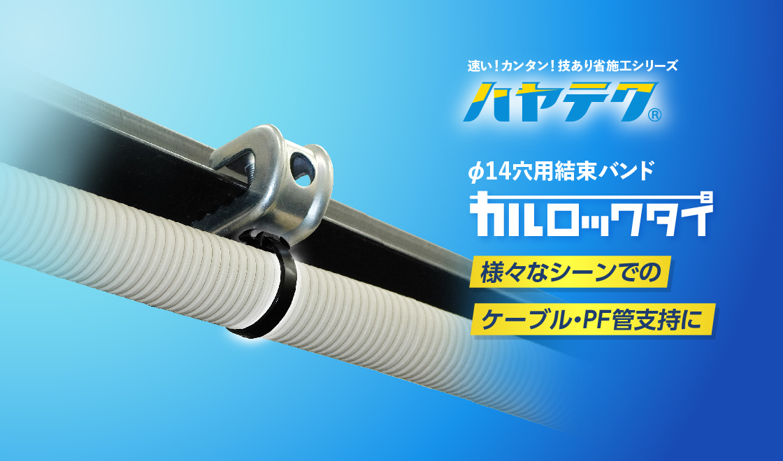 結束バンドと支持具が一体化しているため、サイズ選定不要で簡単施工。施工時間と部材選定の手間を大幅に削減します。