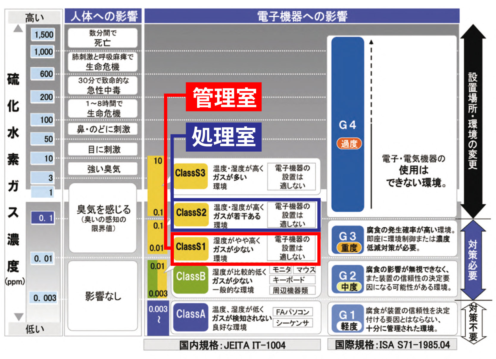 処理室・管理室ともに、電子機器の設置には適さない過酷な腐食環境であることが数値として明らかになりました。